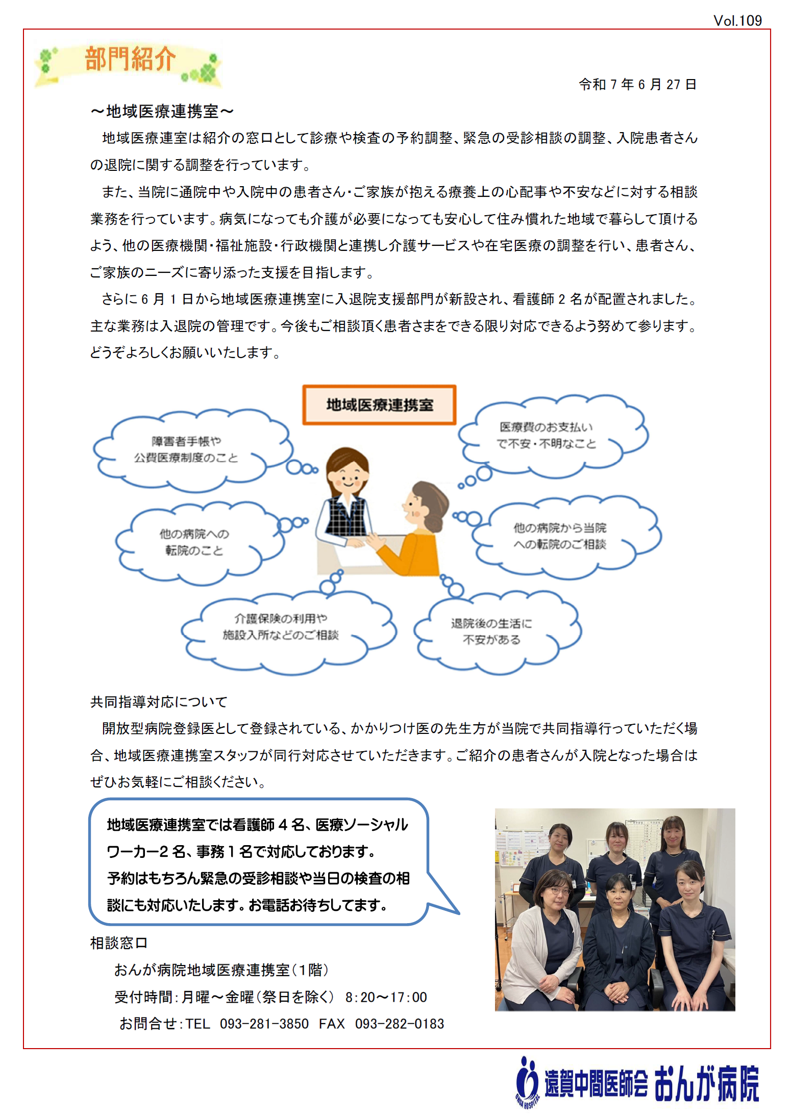おんが病院は、遠賀・中間地域の急性期病院として地元の医療機関と手を携え皆様の健康を守ります。