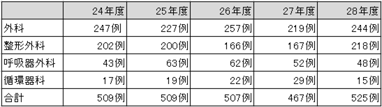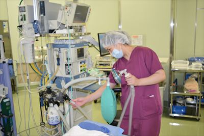手術室では、年間合計約500例の消化器外科手術・呼吸器外科手術・整形外科手術・ペースメーカー移植手術が