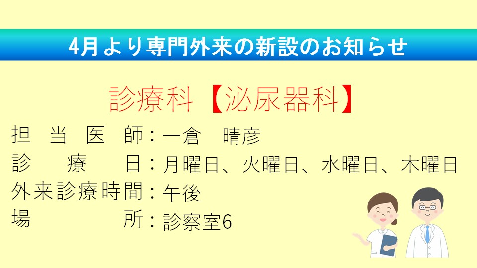 4月より診療科新設のお知らせ