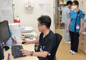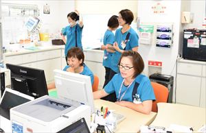 外来は、救急科、内科(消化器科・呼吸器科・循環器科・糖尿病内科)、外科(一般外科・消化器科、整形外科、総合診療科、小児科、放射線科の診療科から構成され、患者さんや家族の方に安心して診療を受けられるような看護を目指しております。