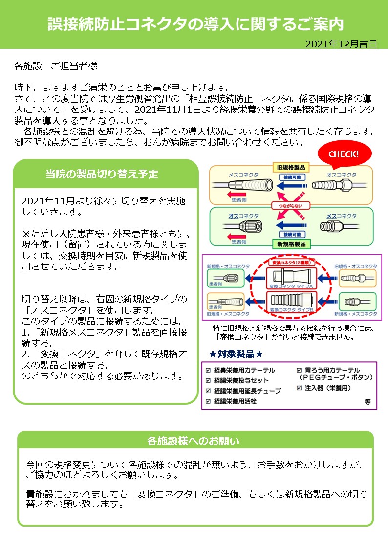 誤接続防止コネクタの導入に関するご案内