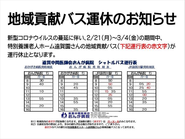 地域貢献バス運休のお知らせ